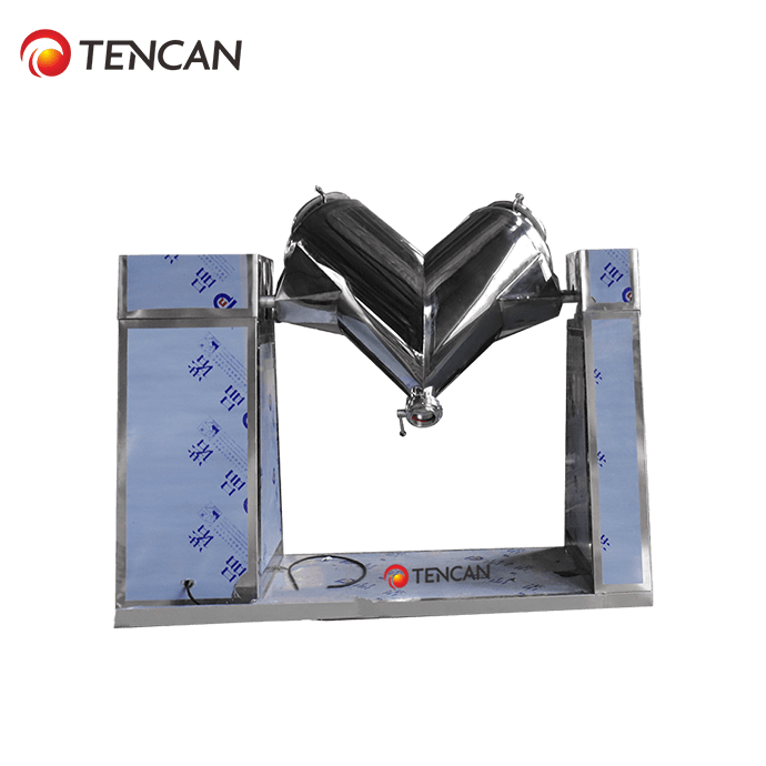 V-type mixer is applied to industries of pharmacy, food, chemical engineering, metallurgy, electron, which need to mix two or more kinds of dry powder and particles. With such a special structure of V-type mixing tank, materials inside are turning around repeatedly to achieve uniform mixing. The machine has many features such as no dead angle, high speed, short mixing time, uniform mixing.